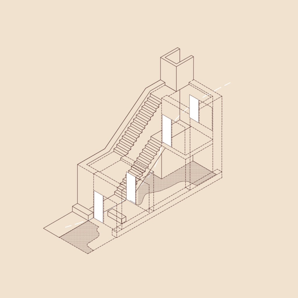 Playing around the different floors and terraces, the house invites people to move around and explore spaces, perspectives and uses, finding an enriched human daily experience by inhabiting space with other living beings.